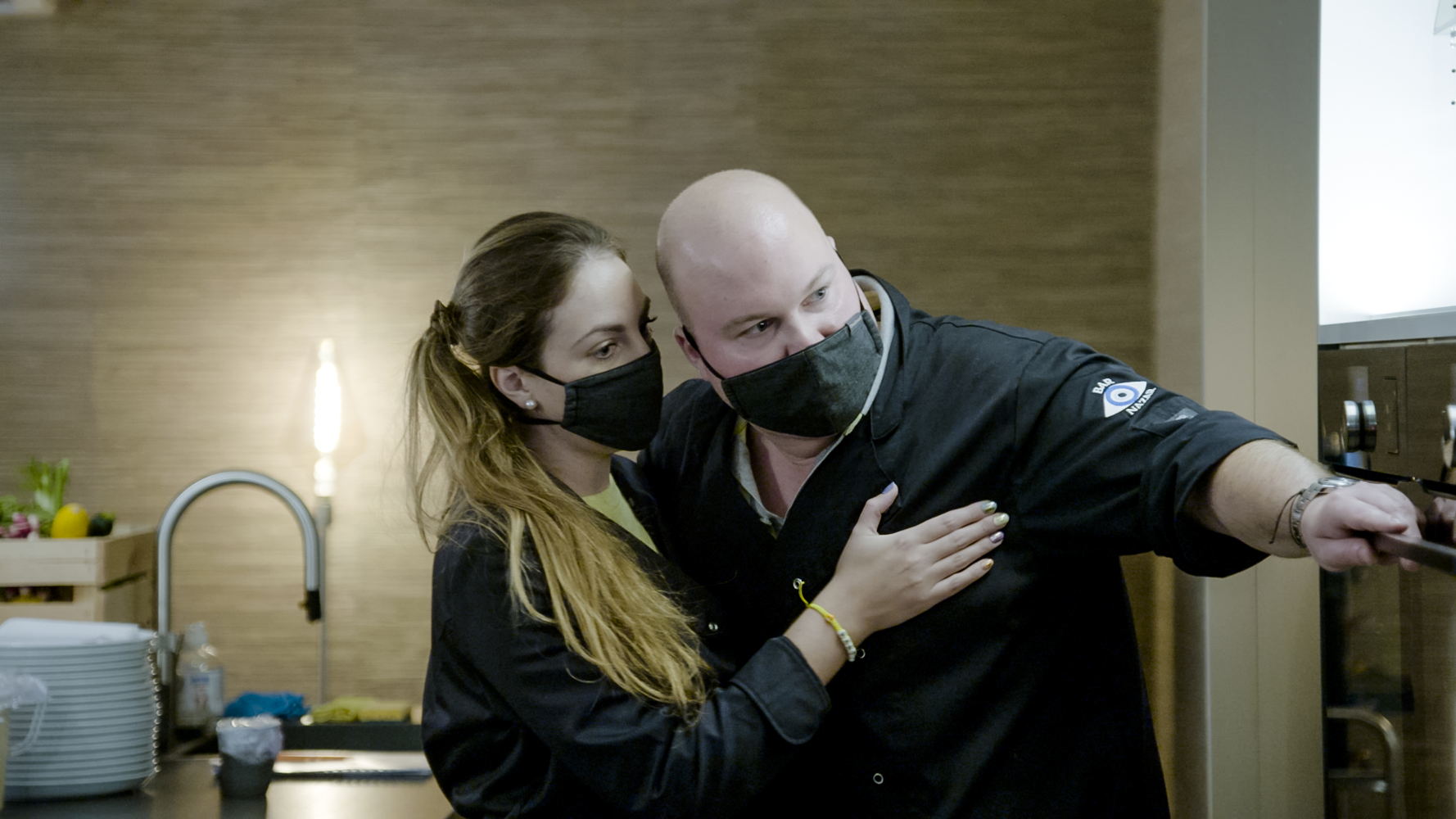 Lorenzo en Ayse zijn in hun ‘Bar Nazar’ in Mechelen ook volop bezig met de mise en place van hun menu, maar het koppel botst al meteen op een eerste hindernis: de lamsnek is niet ontbeend. “En nu? En als je dat nu verprutst?” “Ja, dan is het stoofvlees, hé?” Nood breekt wet, dus Lorenzo probeert voor de eerste keer in zijn leven het stuk te ontbenen. En daar is hij lang mee bezig. De tijd van hun mise en place tikt weg... Ayse krijgt daarenboven de taak om 50 kilo worteltjes te schrapen. “En? Wat heb je gedaan vandaag? 50 kilo wortelen gesneden… Eigenlijk hebt gij heel veel chance dat ik je graag zie, hoor!” zegt ze en dan ligt er nog een hoop kleine worteltjes te wachten voor het dresseren van het bord. “Lorenzo, ik wil naar huis!!!”