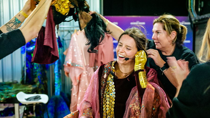 De liefde voor Fortuna wordt duidelijk in Behind The Mask op VTM GO. Lynn wordt helemaal gek wanneer ze haar pak voor het eerst te zien krijgt. “Wauw, prachtig! Ik voelde meteen een mysterieuze vibe bij de naam Fortuna, maar ik wist niet dat ze er zo mythisch zou uitzien. Dit moet ik even verwerken, echt impressionant! Ik heb meteen een connectie.” Lynn werd snel één met haar personage en viel nooit uit haar rol. “Ook niet tijdens technische stops tijdens de show. Dan zie je de ogen van het publiek op je branden, dat vind ik leuk. Ik hou ervan om dan te spelen en heb altijd volgehouden, ook wanneer het niet moest.”