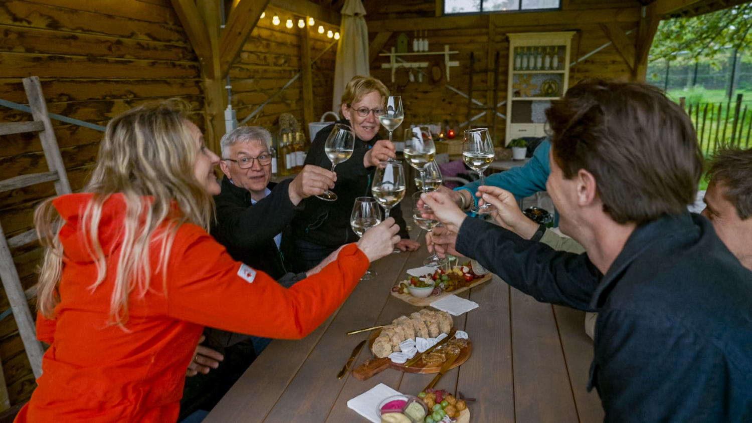 Vlakbij het historische Lanaken, bevindt zich B&B Gellick van trotse eigenaars Mariet en Paul. Een stofje zullen de gasten er niet tegenkomen want poetsfreak Mariet is met de borstel geboren. “Als er iemand binnenkomt met vuile schoenen, krijg ik het benauwd”, klinkt het. “Zo laat ik niemand tot boven gaan.” De kamers zijn vernoemd naar de drie wijnsoorten van hun zelfgemaakte wijn: Chardonnay, Pinot noir en Meunier. En of dat doet watertanden… Iedereen staat te popelen om de wijn te proeven. Valt hun zintuiglijke activiteit, het blotevoetenpad van Lietenberg, even hard in de smaak?