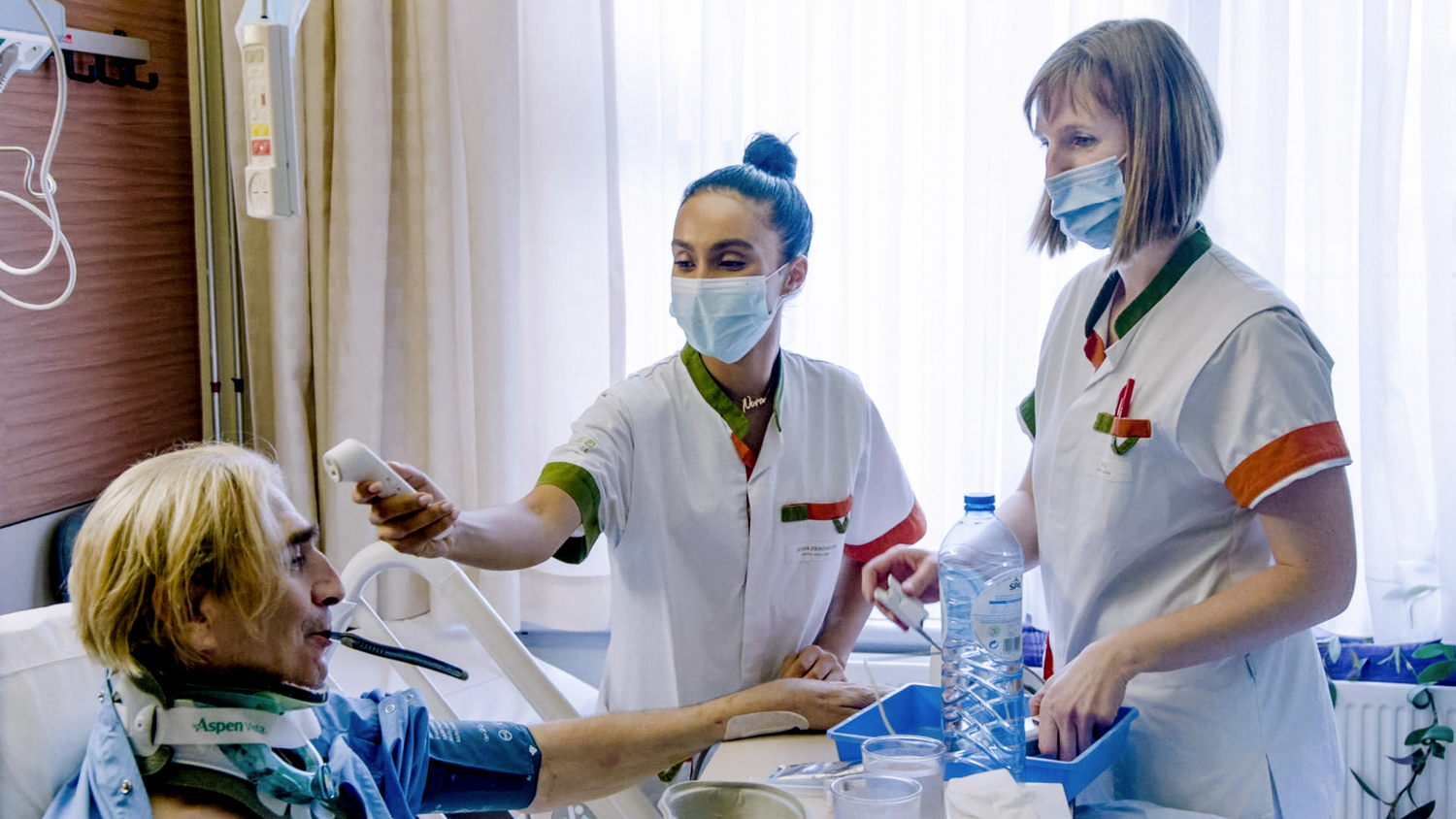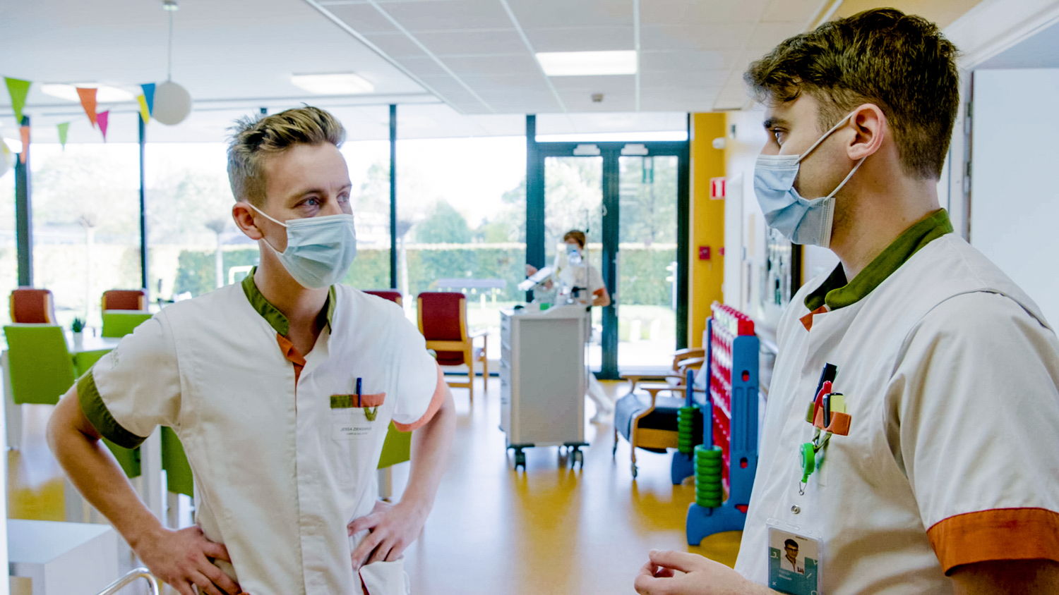 Op de afdeling geriatrie maakt Jonas kennis met Sylvain. De man heeft dementie en dat doet hem aan zijn eigen oma denken. “Zij heeft ook dementie en zit in een rusthuis. Ik ga haar eigenlijk maar weinig bezoeken en daar voel ik mezelf wel schuldig over. Ik vind het wel bijzonder om te merken dat je als verpleger al kan bijdragen door gewoon te luisteren naar deze patiënten.” En luisteren is iets wat ook Nora het liefst van al doet: “Babbelen en dingen te weten komen, dat is wat ik tof vind. Eén van mijn patiënten heeft bijna elk bot in zijn lijf gebroken en nog was hij goed gezind en begon hij te vertellen over zijn carrière.”